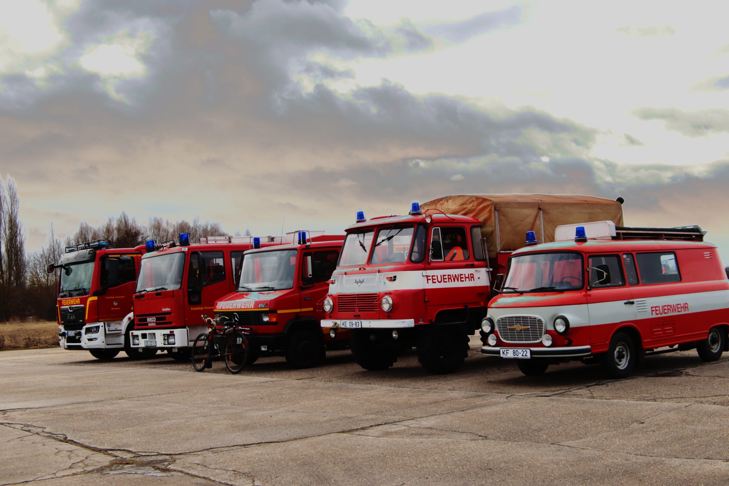 Im Februar dieses Jahres trafen sich drei Originalfahrzeuge sowie zwei baugleiche Modelle zu einem Fototermin auf der alten Landebahn. Lediglich der H3A konnte mangels fahrbereitem Exemplar nicht teilnehmen. Die beiden DDR-Fahrzeuge wurden freundlicherweise zur Verfügung gestellt, während die Fahrzeuge von Mercedes, Iveco und MAN originale Einsatzfahrzeuge aus unserem Bestand sind. Ein Melder-Fahrrad symbolisierte dabei die Zeit der Pferdekutschen.