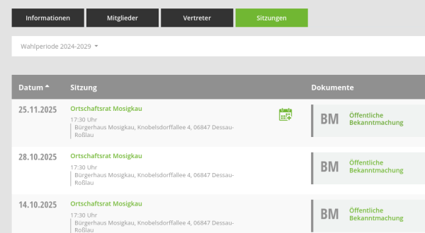 - Veranstaltungstermine und Sitzungstermine im Ort
